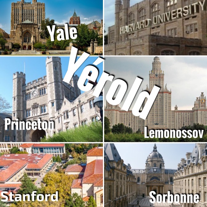 Yérold, est l’école prestigieuse dans mon livre Lileau. Le mot Yérold m’est venu en pensant aux grandes universités, les « Big three colleges » (Yale, Harvard, Princeton) ou encore à la non moins prestigieuse Stanford. Des noms qui me faisaient rêver étant jeune… Ce Lycée Yérold, je l’ai imaginé tout en pierres blanches, immaculé comme une page à écrire. Cela me rappelle aussi la splendeur claire de l’université de Moscou sur les bords de la Volga : Lomonossov, ou encore les vieux murs de la Sorbonne à Paris. Mais Yérold, je l’ai surtout pensé avec un enseignement inversé.