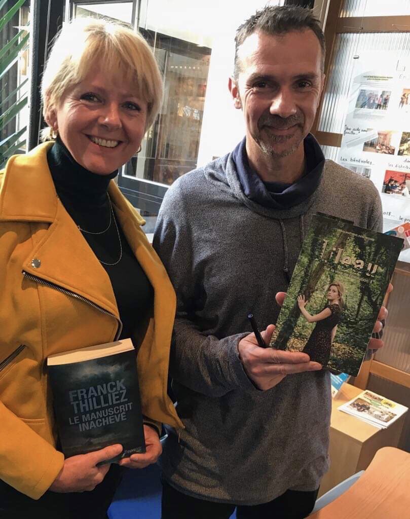 C’est avec gentillesse que Franck Thilliez, l’écrivain de polars, a accepté mon livre et de poser à mes côtés mercredi 12/12/18 lors d’une rencontre auteur organisée par la MAIF. Nous avons échangé nos livres c’était un moment magique !